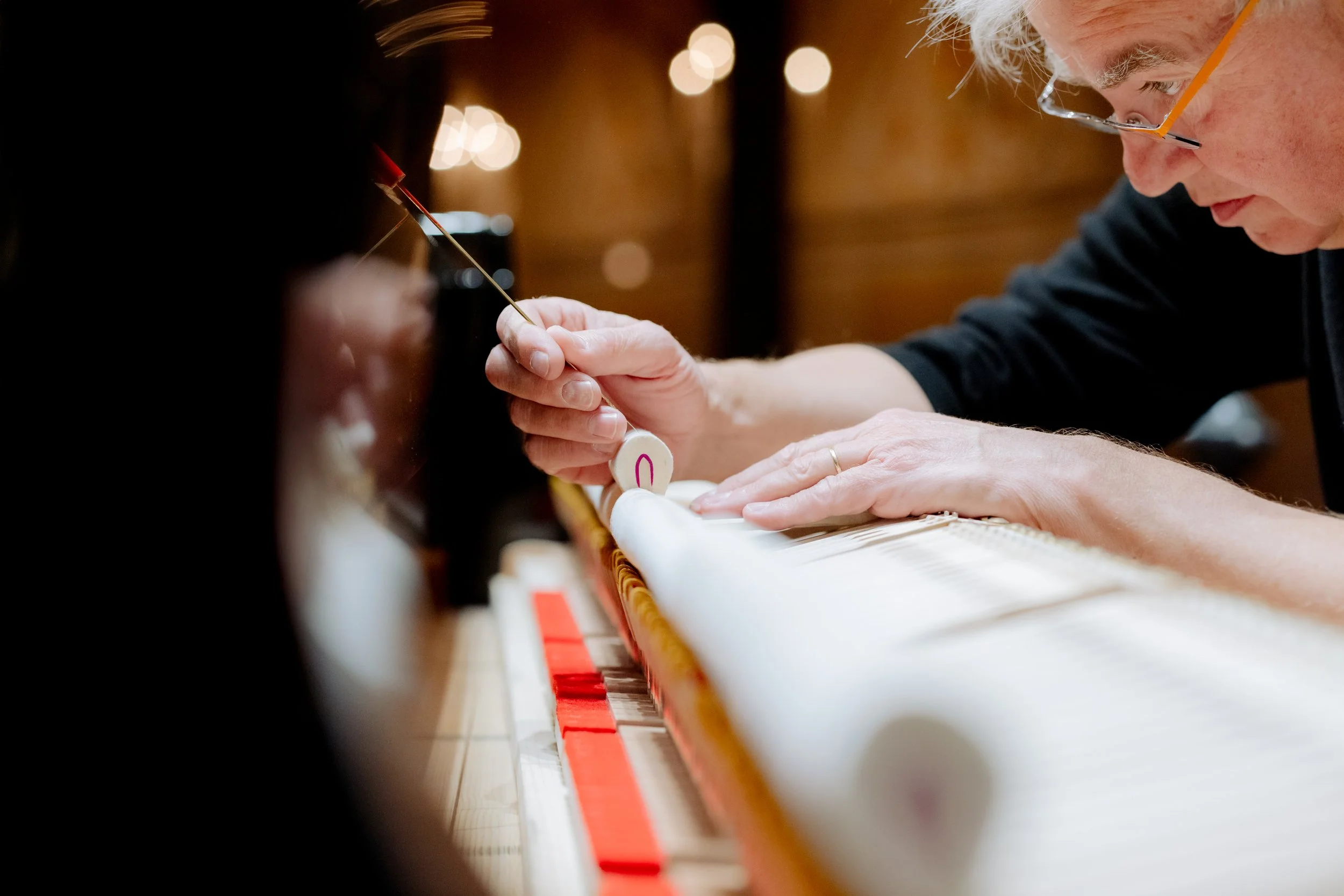 “Het moet zo snel zijn als een Ferrari, maar kunnen zoeven als een Rolls Royce”, zegt Michel. Al 33 jaar zorgt hij ervoor dat pianisten – zoals Cédric Tiberghien – kunnen wegzweven in de mooiste akoestiek van ter wereld.